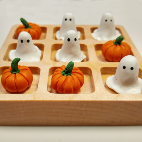 Elevate your Halloween festivities with a delightful twist on a classic game. Our Tic Tac Toe set with Handmade Ghost and Pumpkin Pieces on a Solid Maple Hardwood Board is the perfect blend of spooky and playful, making it an ideal addition to your holiday celebrations.