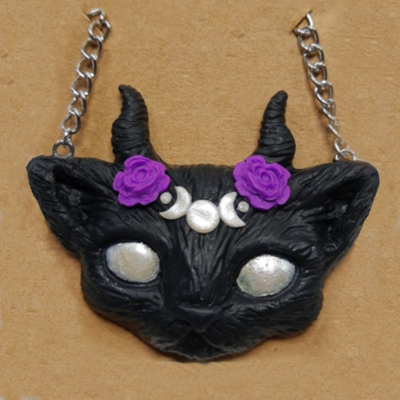 Channel the mystique of the night with this Black, Silver Eyed Demon Cat Necklace – a captivating and unique piece of jewelry that adds an enchanting touch to your style.